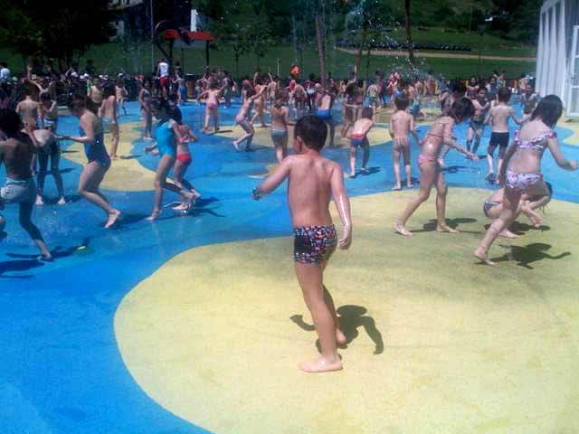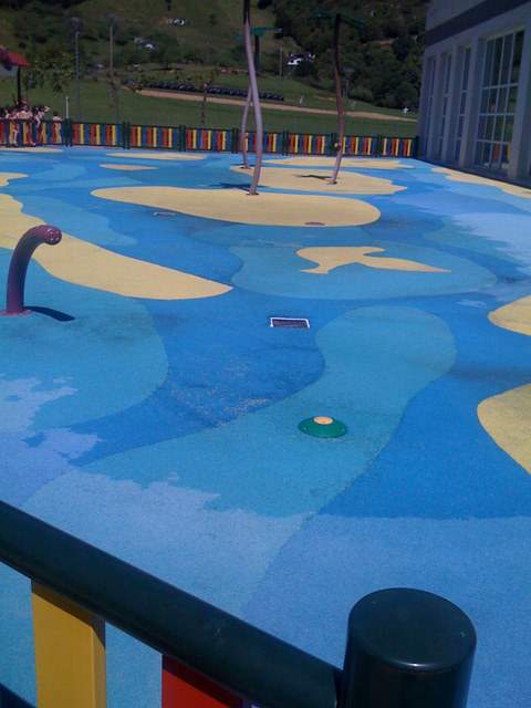 Juegos de agua interactivos para niños que juegan sin peligros. La solución en parques de ciudad, en piscinas y centros acuáticos. Ahorro de agua por sistema de reciclaje.