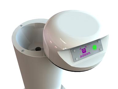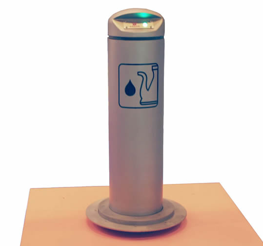 Recogida para el aceite doméstico usado, con identificación de ciudadano. Material y acabados le proporcionan una alta resistencia a la intemperie y al vandalismo. Una simple lectura de la tarjeta ciudadana identificará al usuario y le permitirá abrir la tapa. Con el embudo libre, el usuario podrá verter el aceite doméstico usado a granel. Durante el proceso, el sistema analizará la calidad y cantidad del residuo vertido.
